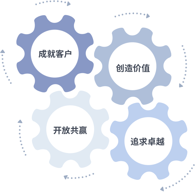 成就客户是一切决策的出发点,创造价值是衡量所有工作的标准,追求卓越是J9九游做事做人的态度,开放共赢是J9九游的格局也是最终的结果。价值观的齿轮环环相扣,推动着组织里的每个人不断向前。